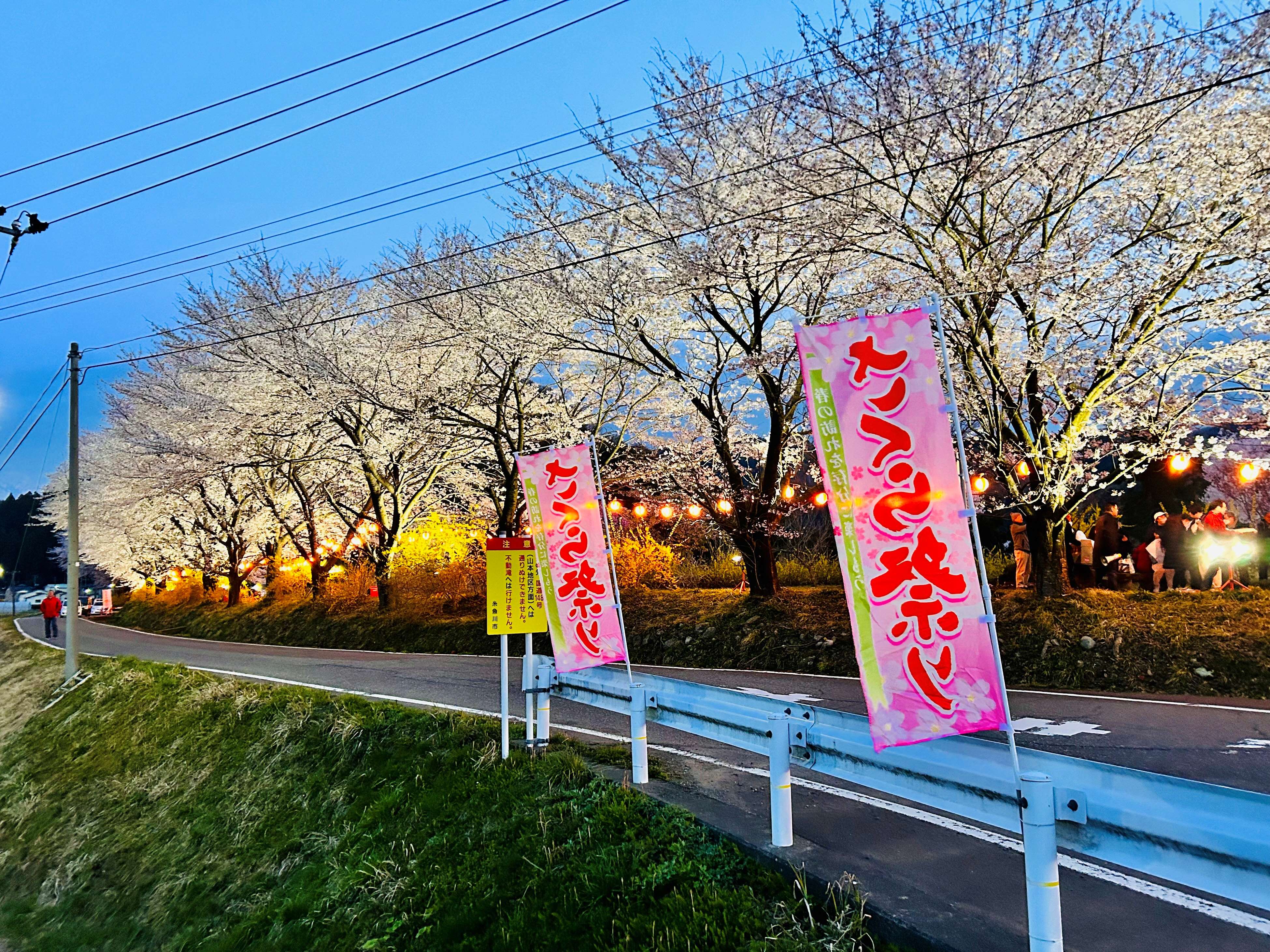 まほろば街道沿いにあり、43本のソメイヨシノが咲きほこります。